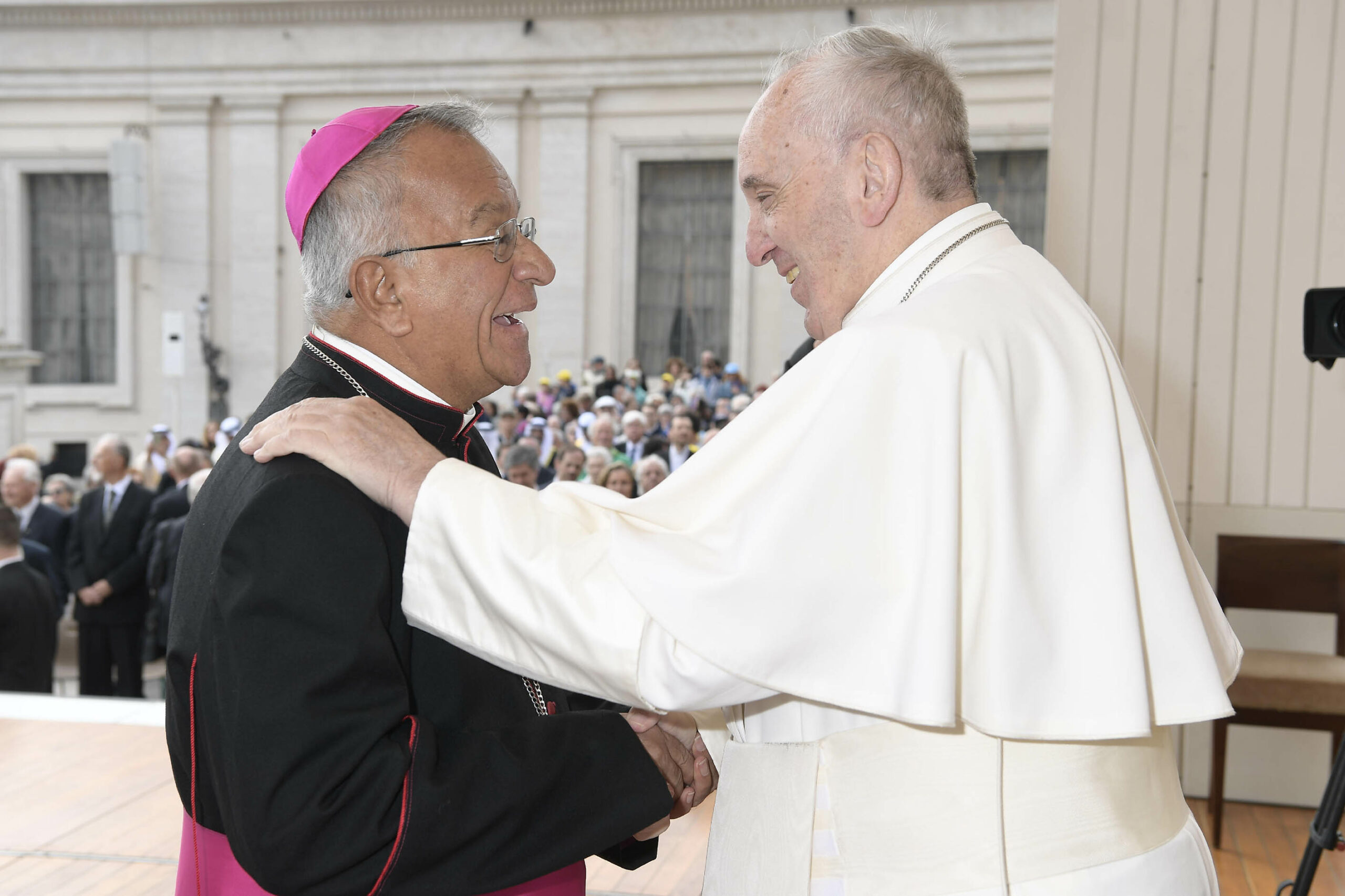 Por lo tanto, venerable hermano, bendecid al Señor que te estableció como administrador fiel y prudente en favor de su familia (Lc12,42), queremos expresar a ti nuestra alegría por el testimonio y por la singular emoción con que celebrarás el día 17 del mes de Junio el jubileo de las bodas de oro de tu ordenación presbiteral y también el día doce del próximo mes de Diciembre la celebración jubilar de las bodas de plata de tu consagración episcopal, por medio de esta carta dar a conocer nuestra alegría por el apostolado que has sabido cumplir.