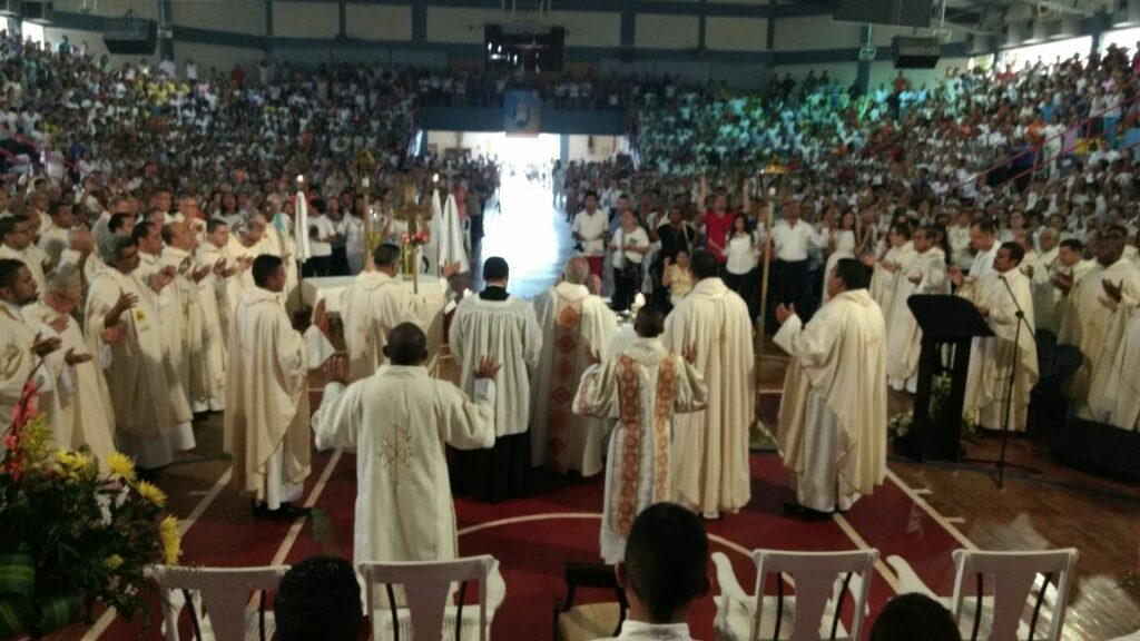 |Vídeo de la Misa Crismal|| La Arquidiócesis de Cartagena, dio inicio al lunes santo desde las 8:00am, en el Coliseo del Colegio Biffi, a la Misa Crismal, en compañía de Mons. Jorge Enrique Jiménez Carvajal junto con todos los presbíteros, religiosas y laicos de la ciudad. Una mañana llena de unción, aprendizaje y fe. La […]