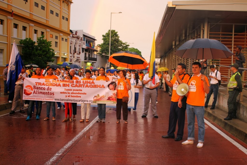 El pasado miércoles realizamos la marcha del Día Mundial de la Alimentación. Bajo la lluvia, los cartageneros alzaron la voz en contra del hambre que padece la ciudad y el mundo entero.