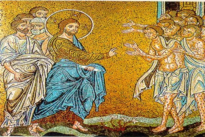Evangelio de nuestro Señor Jesucristo según San Lucas (17,11-19) Mientras se dirigía a Jerusalén, Jesús pasaba a través de Samaría y Galilea. Al entrar en un poblado, le salieron al encuentro diez leprosos, que se detuvieron a distancia y empezaron a gritarle: «¡Jesús, Maestro, ten compasión de nosotros!».