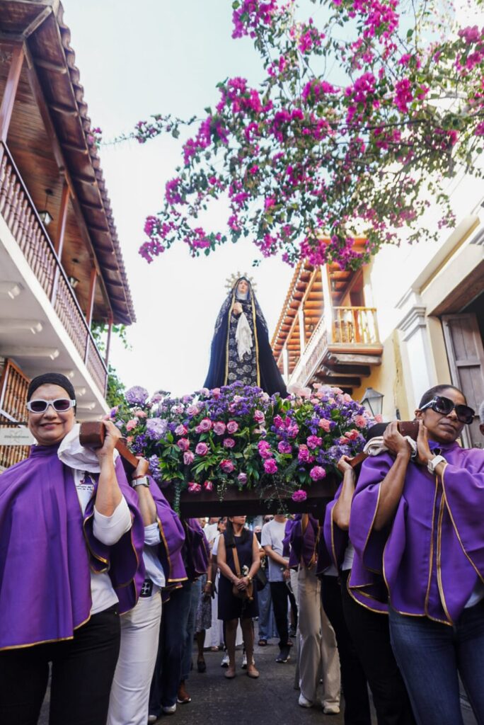 A partir de las 6:00 p. m., viviremos la peregrinación de la Dolorosa, partiendo desde el Santuario de San Pedro Claver hacia la Iglesia de Santo Domingo. Será un recorrido de silencio, donde acompañaremos el corazón traspasado de la Madre, quien nos enseña a esperar en la resurrección incluso en la hora más oscura.