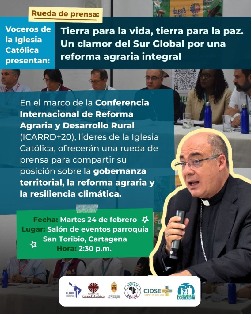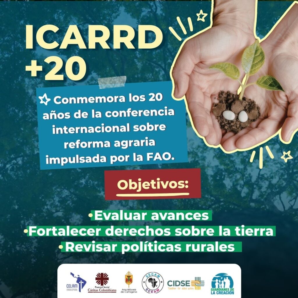 En el marco de la Segunda Conferencia Internacional sobre Reforma Agraria y Desarrollo Rural (ICARRD+20), la Iglesia Católica estará presente a través de una delegación articulada por el CELAM, el Secretariado Nacional de Pastoral Social (Cáritas Colombia), SECAM (África), FABC (Asia), CIDSE, el Vaticano y Cáritas Internacional. El propósito de esta participación es abordar, desde sus distintas dimensiones, temas fundamentales para la vida de las comunidades rurales y el cuidado del territorio.