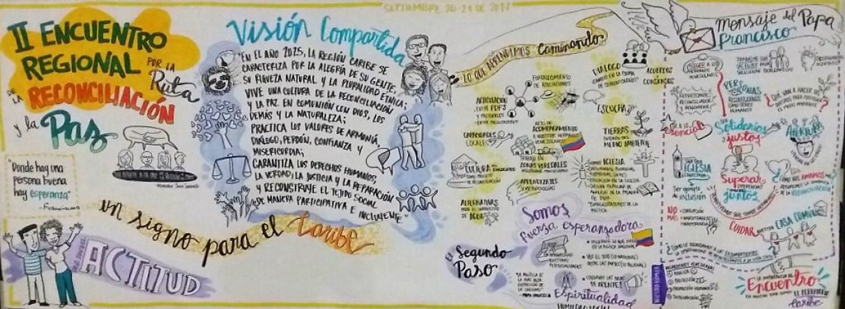 Las pastorales sociales del Caribe Colombiano, los Programas de Desarrollo y Paz, las vicarías de Pastoral de las jurisdicciones eclesiásticas, la Red Nacional de Programas de Desarrollo y Paz, Universidades, Empresarios y Entidades de Cooperación, acompañados por INTERTEAM y presididos por nuestros obispos, nos hemos sentido inspirados y convocados por el Papa Francisco para dar el segundo paso que nos demanda La Ruta por la Reconciliación y la Paz del Caribe colombiano. Hemos celebrado la cultura del encuentro y hemos vivido una rica experiencia con Jesús “echando el vino nuevo en odres nuevos” (Lc 5,38).