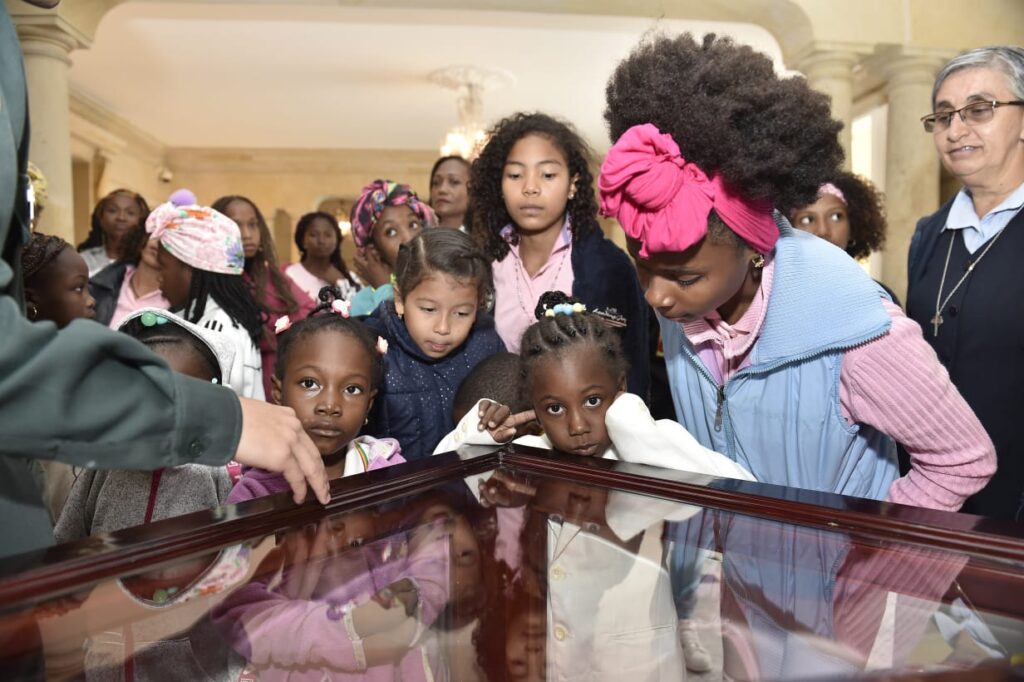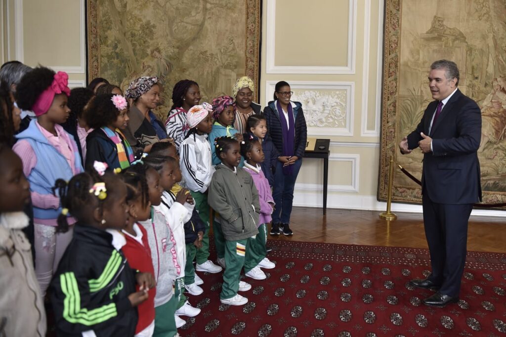 El señor Presidente de la República de Colombia, Iván Duque Márquez, ha cumplido su palabra al recibir en el palacio de gobierno a la hermana Blanca Nubia, (representante de la fundación TALITHA QUM) junto con niñas beneficiarias del programa Talitha Qum y de San Basilio de Palenque.